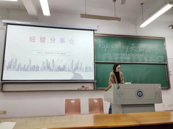 2021年,黃昕婷參加英語比賽獲獎后回校給學弟學妹做經驗分享。受訪者提供